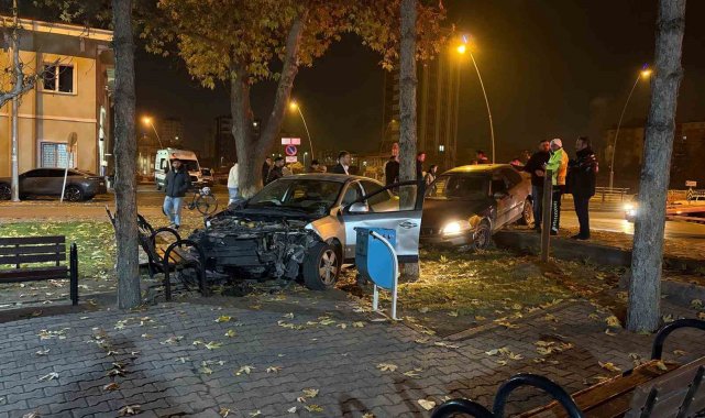 Kayseri'nin Kocasinan ilçesinde çarpışan 2 otomobil savrularak, cami bahçesine girdi. Kazada yaralanan olmadı.