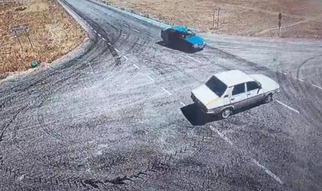 Nevşehir'de kavşakta çarpışan iki otomobilden biri alev aldı. Yaşanan kaza güvenlik kameralarına yansıdı.