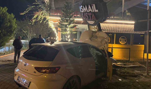 Hatay'da bir lokantanın tabelasına çarparak hurdaya dönen otomobilin sürücüsü kazanın ardından kayıplara karıştı.