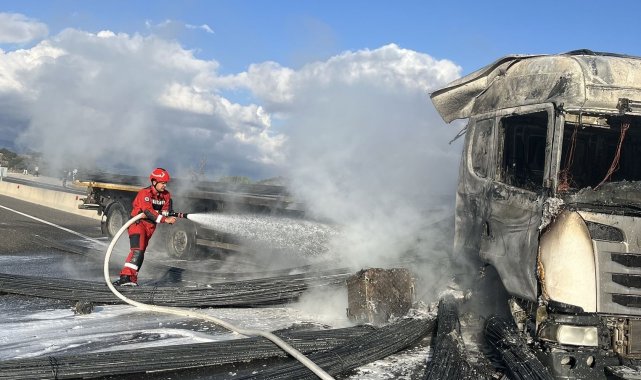 Kaza yapan tır alevlere teslim oldu