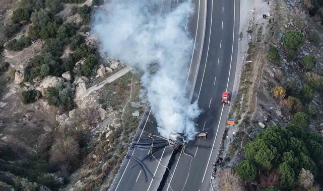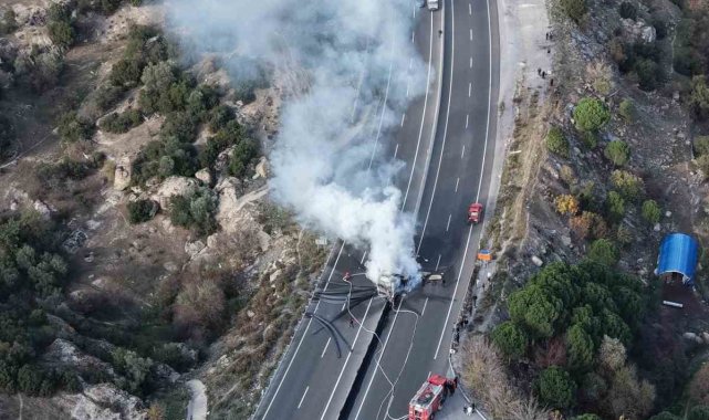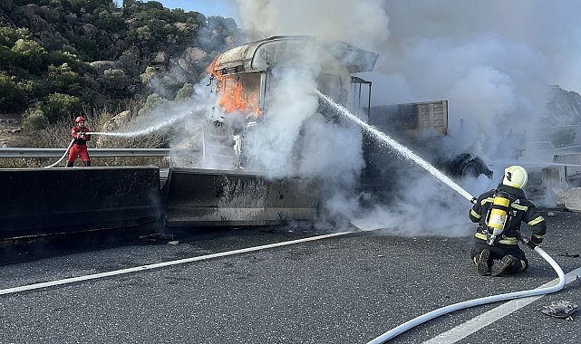 Edinilen bilgiye göre, Muğla- Aydın karayolu her iki ilin sınır noktasında meydana gelen kazada lastiği patlayan ve yoldan çıkan tır beton bariyerlere çarparak alev aldı. Kazada yaralanan olmazken yapılan ihbar üzerine bölgeye Muğla Büyükşehir Belediyesi İtfaiye ve jandarma ekipleri sevk edildi. Kısa sürede olay yerine ulaşan ekipler, Tırı saran alevlere müdahale ederek yangını kontrol altına aldı. Yangında araç kullanılmaz hale geldi. Söndürme çalışmaları sırasında her iki yönde de kilometrelerce araç kuyruğu oluştu.