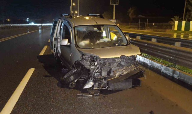 Kaza, Alanya-Manavgat D-400 kara yolunda yaşandı. Edinilen bilgiye göre, Alanya istikametinden Manavgat istikametine seyir halindeki sürücüsü belirlenemeyen 07 ALN 351 plakalı hafif ticari araç, bariyerlere çarptıktan sonra yaklaşık 150 metre giderek Sanayi Köprülü Kavşak girişinde durabildi.