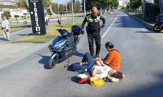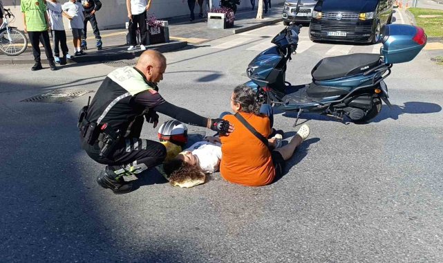 Güvenlik kamerasına saniye saniyesine yansıyan kazada motosiklet sürücüsü İlknur K. ve motosiklette yolcu olarak bulunan annesi Menekşe K. yaralandı.