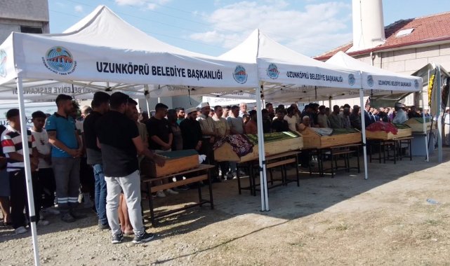 Edirne'de trafik kazasında ailesinden 5 kişiyi kaybeden ve sadece kendi yaralı kurtulan otomobil sürücüsü baba, cenaze töreninde zor anlar yaşadı.