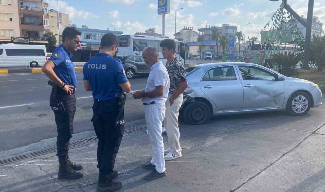 Antalya'nın Serik ilçesinde bir motosikletle otomobil çarpıştı. Kazada motosiklet sürücüsü yaralanırken, kaza anı güvenlik kamerası tarafından anbean kaydedildi.