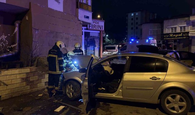 Kazada savrulan otomobil duvarı yıktı: 1'i ağır 5 yaralı