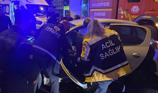 Kazada sonrası araçta sıkışan sürücüyü itfaiye kurtardı