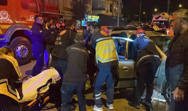 Kaza, akşam saat 22.00 sıralarında Alacasuluk Mahallesi Şehit İsa kiriş Caddesi üzerinde meydana geldi. Edinilen bilgiye göre, A.B. (20) idaresindeki 42 AAD 791 plakalı BMW marka otomobil ile S.D. (26) yönetimindeki 70 ABD 261 plakalı Peugeot marka otomobil çarpıştı. Çarpışmanın etkisiyle 70 ABD 261 plakalı otomobilin sürücüsü S.D. ile aynı araçta bulunan B.U. (27) yaralandı. İhbar üzerine adrese sağlık ve polis ekipleri sevk edildi. Otomobil sürücüsü S.D.'nin araçta sıkışması üzerine adrese itfaiye ekibi çağrıldı. İtfaiyenin çalışması sonucu sıkıştığı yerden kurtarılan sürücü, daha sonra sağlık ekiplerine teslim edildi. Yaralılar, ambulanslarla Karaman Eğitim ve Araştırma Hastanesi'ne kaldırılarak tedavi altına alındı. Polisin kaza yerindeki incelemesinin ardından kaza yapan araçlar olay yerinden kaldırıldı.