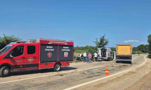 Bursa'nın Karacabey ilçesinde kamyon ile otomobilin kafa kafaya çarpışması sonucunda ağır yaralı olarak hastaneye kaldırılan araç sürücüsü hastanede hayatını kaybetti.