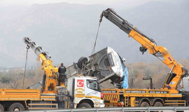 Öte yandan, kaza yapan otobüs yaralıların hastaneye sevk edilmesi ve olay yeri inceleme ekibinin çalışmasının ardından vinçler yardımıyla çekiciye yüklenerek olay yerinden kaldırıldı. Otobüsün kaldırılmasının ardından jandarma ekipleri otobüsün altında kalan başka cesetler olma ihtimaline karşı arama yaptı.
