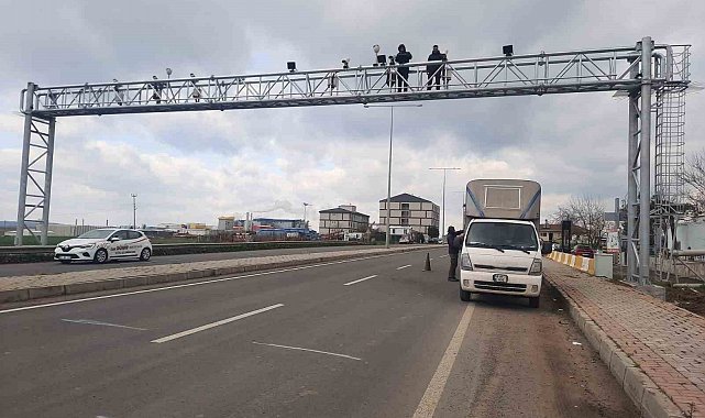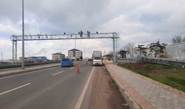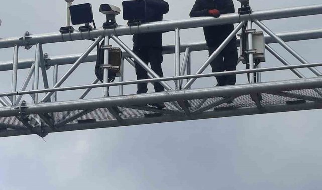 Kazada zarar gören otoyol plaka tanıma sistemi direği yenilendi