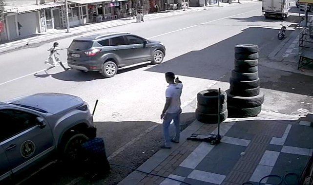 Görüntülerde etrafını kontrol etmeden yola aniden çıkan küçük kızın, manevra yapan aracın altında kalmaktan son anda kurtulduğu gözlendi. Araç ilerde dururken kazayı kıl payı atlatan kızın yaşadığı korku ise hareketlerine yansıdı. Kızın yanına giden annesinin, yola kontrolsüz bir şekilde çıktığı için kızdığı ve sonrasında ise tokat attığı görüldü.