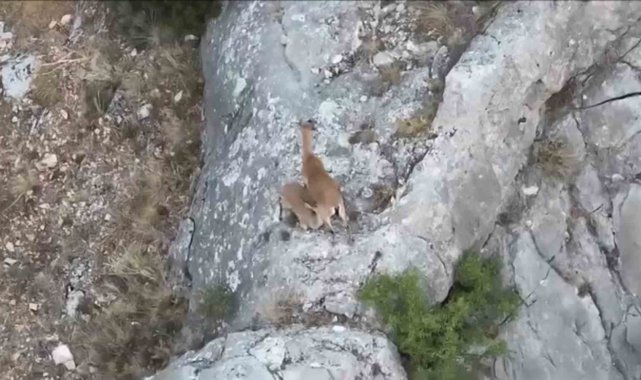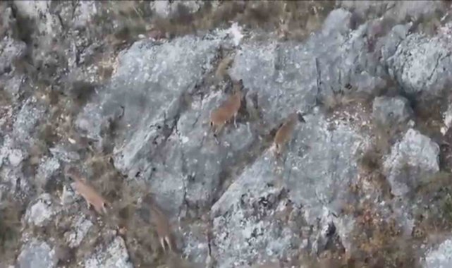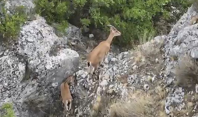Kazankaya Kanyonu'nda yaban keçileri ve yavruları dronla görüntülendi