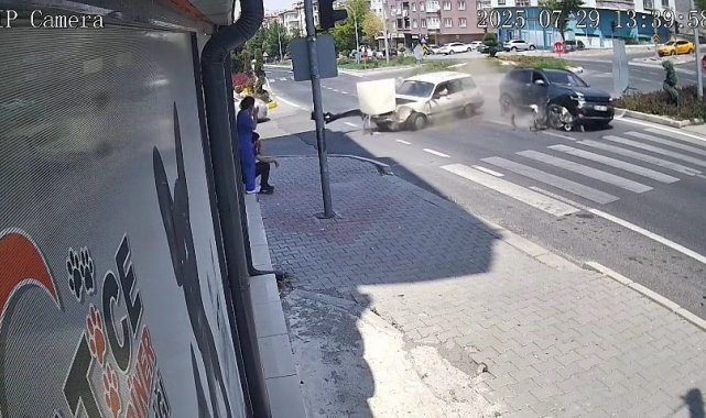 Nevşehir'de meydana gelen trafik kazasında 2 kişi hafif yaralandı. Kaza anında iş yerinin önünde oturan bir vatandaş ise kazayı adeta film izler gibi izledi. Yaşananlar güvenlik kameralarınca saniye saniye kaydedildi.