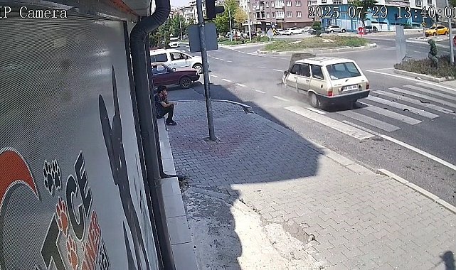 Kaza anında cadde üzerinde bulunan bir iş yerinin önünde oturan bir vatandaş ise kazayı adeta film izler gibi izledi. Hemen yanında çarpışan iki otomobili hiçbir tepki vermeden seyreden vatandaşın rahat tavırları, bir iş yerinin kamerasına da saniye saniye yansıdı.