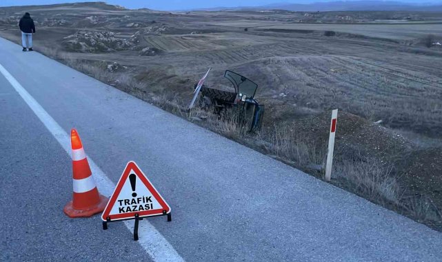 Tarlaya uçan traktörü gören tır sürücüsü yardım etmek için durdu, traktör için olay yerine giden çekici ise duramayarak tıra arkadan çarptı.