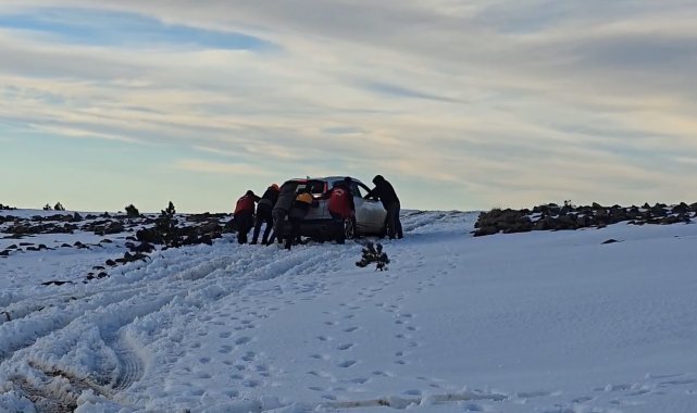 Kazdağları'nda bin 700 metre yükseklikte kara saplanan araç kurtarıldı