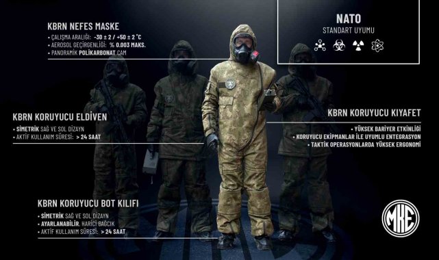 Makine ve Kimya Endüstrisi (MKE), kimyasal, biyolojik, radyolojik ve nükleer tehditlere karşı Türk Silahlı Kuvvetleri (TSK) için NATO standartlarında yerli ve millî koruyucu ekipmanlar geliştirerek sahadaki personelin güvenliğini üst seviyeye taşıyor.