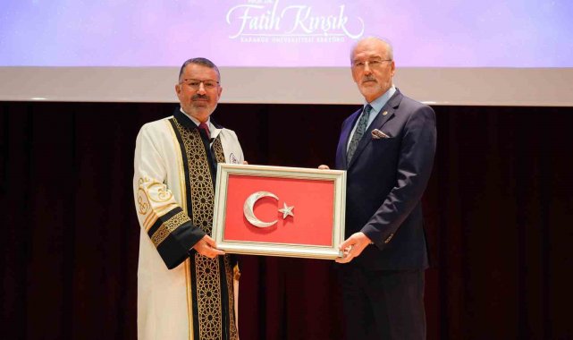 Konuşmasının ardından Cevizoğlu'na, Rektör Kırışık tarafından teşekkür belgesi ile Türk Bayrağı takdim edildi.