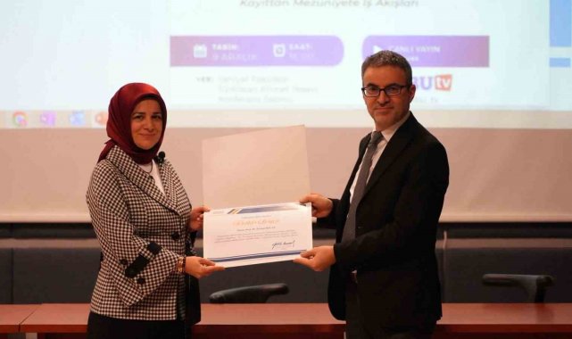 Etkinliğin sonunda, Prof. Dr. Zeynep Özcan'a katkılarından dolayı İktisadi ve İdari Bilimler Fakültesi Dekanı Prof. Dr. Ersin Müezzinoğlu tarafından teşekkür belgesi verildi.