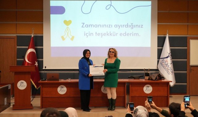 Programın sonunda Lisansüstü Eğitim Enstitüsü Müdürü Prof. Dr. Zeynep Özcan, Doç. Dr. Fatma Betül Kurnaz'a teşekkür belgesi takdim etti.