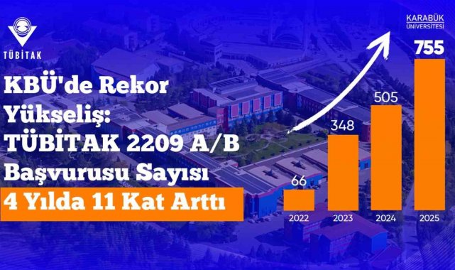 Karabük Üniversitesi'nde (KBÜ) Türkiye Bilimsel ve Teknolojik Araştırma Kurumu (TÜBİTAK) 2209-A ve 2209-B programlarına yapılan başvurular, son dört yılda 11 kat artarak 755'e ulaştı.