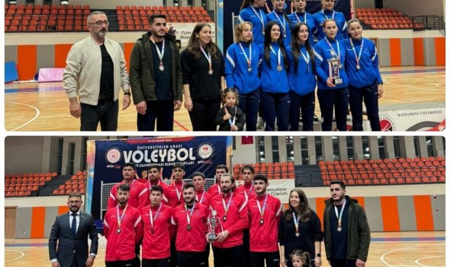 Karabük Üniversitesi (KBÜ) bölge şampiyonasında hem kadın hem erkek voleybol takımlarıyla kürsüye çıkarak çifte başarı elde etti.