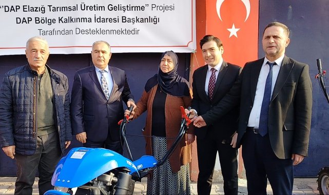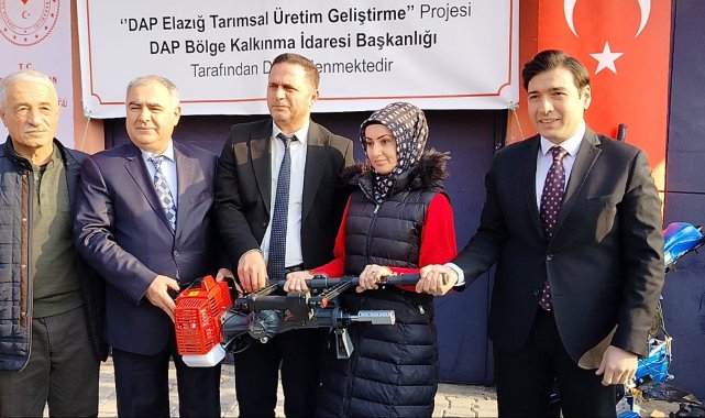 DAP Bölge Kalkınma İdaresi Başkanlığının desteğiyle Tarım ve Orman İl Müdürlüğü tarafından yürütülen DAP Elazığ Tarımsal Üretim Geliştirme Projesi sürüyor. Proje kapsamında Keban ilçesinde düzenlenen törenle hak sahibi üreticilere 110 çapa makinesi, 60 badem silkeleme ve 60 adette ceviz soyma makinesi teslim edildi.