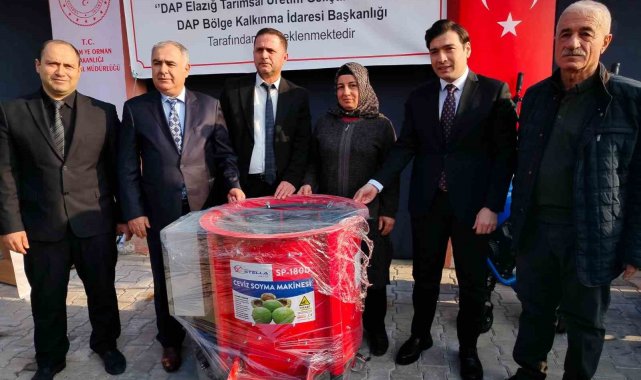 Elazığ'ın Keban ilçesinde çiftçilere çapa, badem silkeleme ve ceviz soyma makineleri dağıtıldı.