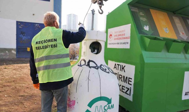 Keçiören Belediyesi İklim Değişikliği ve Sıfır Atık Müdürlüğü'nün yürüttüğü çalışmalarla ilçede bulunan 65 Mobil Atık Getirme Merkezi'nde atıklar geri dönüşüme kazandırılıyor.