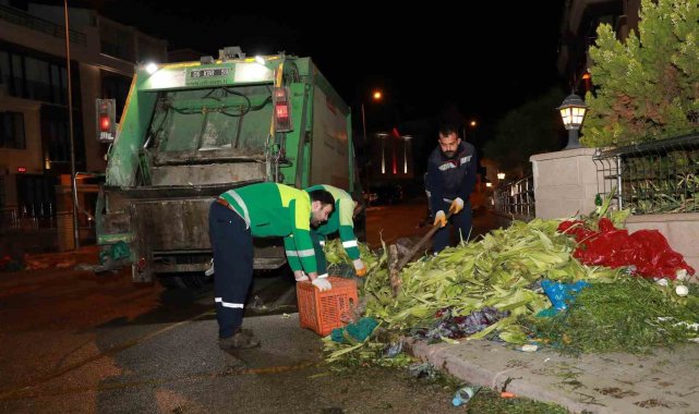 Keçiören Belediyesi, ilçede kurulan semt pazarlarının ardından temizlik çalışmalarını titizlikle sürdürüyor. Vatandaşların sağlığını önceleyen belediye ekipleri, düzenli olarak yürüttükleri temizlik uygulamalarıyla sokak pazarlarında hijyeni sağlamaya çalışıyor. Pazarın sona ermesiyle birlikte sahaya inen ekipler, önce pazaryerinde biriken katı atıkları topluyor, ardından köpüklü suyla fırçalayarak zemini dezenfekte ediyor. Son aşamada ise sokak, tankerlerdeki tazyikli suyla yıkanarak hem kötü kokuların hem de muhtemel sağlık risklerinin önüne geçiliyor. Yapılan bu çalışmalarla yalnızca çevresel temizlik değil, aynı zamanda gıda güvenliği ve halk sağlığı da güvence altına alındığı belirtildi.