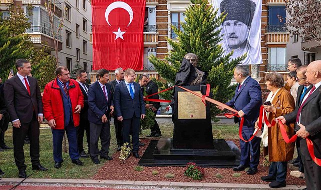 Keçiören'de çalınan ünlü şair Kaysın Kuliyev'in büstünün yerine düzenlenen törenle yeni büst yerleştirildi.