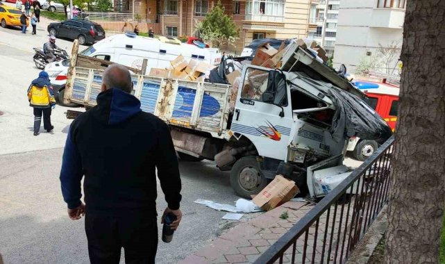 Ankara'nın Keçiören ilçesinde freni boşalan kamyon elektrik trafosuna çarparak durdu.