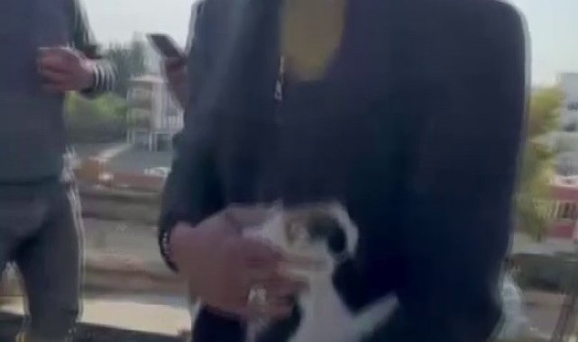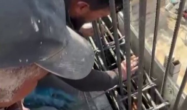 Adıyaman'da, bir inşaatın kiriş demirleri arasına giren ve burada sıkışarak çıkamayan kedi, beton dökümü esnasında son anda fark edilerek kurtarıldı. İşçiler, mahsur kalan kedi için seferber oldu.