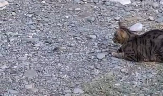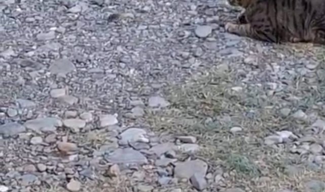 Adana'nın Kozan ilçesinde bir kedi, bahçede karşılaştığı fareyle dakikalarca oynadı. O anlar vatandaş tarafından cep telefonu kamerasıyla kaydedildi.