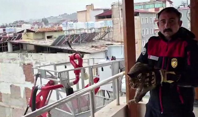 Hatay'da vatandaşlar, evlerinin tam karşısında bulunan 7.katta mahsur kalan kediyi kurtaran itfaiye ekiplerini alkışlayarak teşekkür ettiler.