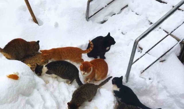Kastamonu'nun Çatalzeytin ilçesinde köy imamının seslendiği kedilerin sıralı şekilde karda yürümeye çalıştığı anlar kameraya yansıdı.