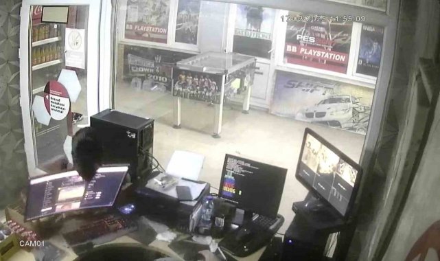 Karadeniz Ereğli ilçesinde Aydanur Aydın; işlettiği internet kafede beslediği kediyle bir süre oynadı. Ardından masanın üzerine çıkan kedi, oyunu devam ettirirken yere atlamak istedi. Ancak yönünü şaşıran kedi, monitörün üzerine atlayınca birlikte masanın üzerine devrildi. O anlar ise işyerinin güvenlik kamerasına yansıdı.