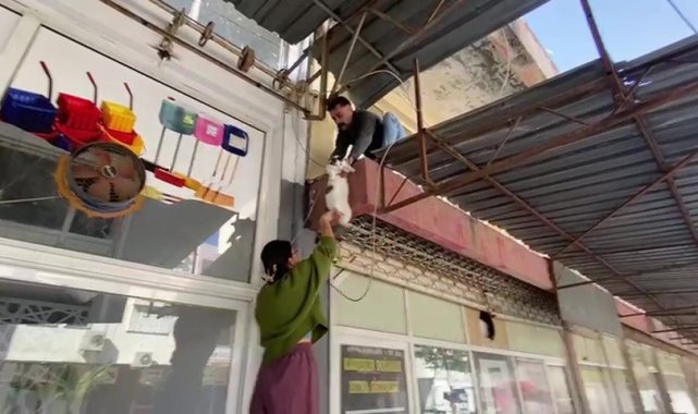 Serik ilçesine bağlı Orta mahallede yaşanan olayda, 4 yıldır beslediği kedisini kaybeden genç kız gözyaşları içerisinde kedisini aramaya başladı. Bir iş yerine ait gölgeliklerde mahsur kalan kediyi kurtarmak için arkadaşından yardım isteyen genç kızın merdivenle kediyi bulunduğu yerden almak için verdiği çaba sonuçsuz kaldı. Genç kızın ağlamaklı halini gören bir esnaf, iş yerinden getirdiği büyük merdiven yardımıyla gölgelik üstüne çıkarak kediyi kurtararak genç kıza teslim etti. Kedisine kavuşan genç kız ise bu kez de sevinçten gözyaşlarına hakim olamadı. İsminin açıklanmasını istemeyen genç kız, "Çok mutluyum, kedime kavuştum. 4 yıldır beslediğim bir kedi" dedi.