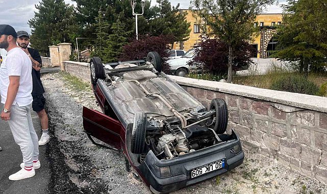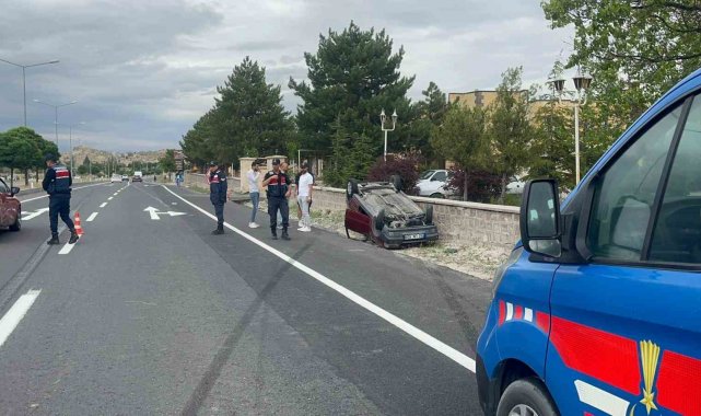 Nevşehir'de bir sürücü önüne çıkan kediye çarpmamak için manevra yapınca araç takla attı. Meydana gelen kazada sürücü yaralandı.