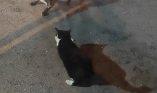 Çevredekiler, tilkiyi o an buldukları peynir, zeytin, ekmekle besleyerek açlığını gidermek istediler. O anları gören kedi ise yemeğini tilkiyle paylaşmak istemedi. Tilkiye patileriyle vurarak yemeğine ortak olan kedi tilki mücadelesini cep telefonuyla kaydeden vatandaşın o görüntüleri yüzlerde tebessüm oluşturdu. Tilki ve kedinin sevimli yemek kavgasında kedi geri adım atmayarak aç tilkiyi patileriyle hırpalayarak yemek kavgasının kazanan ismi oldu.