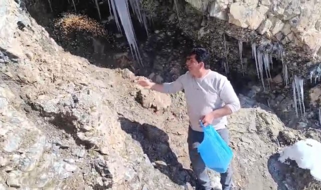 Cabbar Engin isimli vatandaş, "Tehlikeli yollardan geçerek bu mağaraya geldik. Korkmuyoruz, Allah yolunda yapıyoruz. Aç kalan keklikler yem bulamıyordu, biz de onlara yardımcı olmak istedik'' diye konuştu.