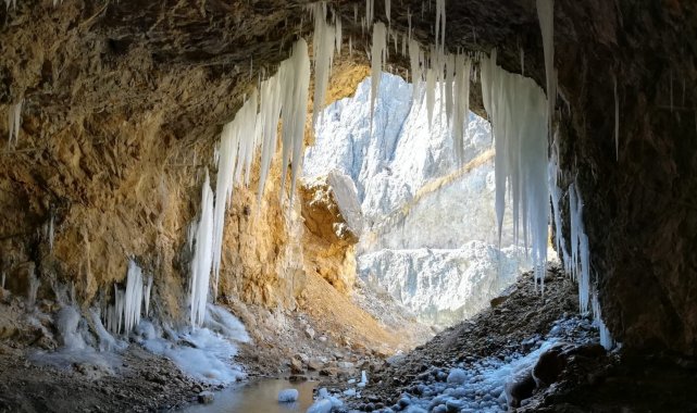 Aşırı soğukların etkili olduğu bugünlerde Taş Yolu buz tuttu. Tüneller içerisinde oluşan buz sarkıtları fotoğraf severlerin akınına uğradı.
