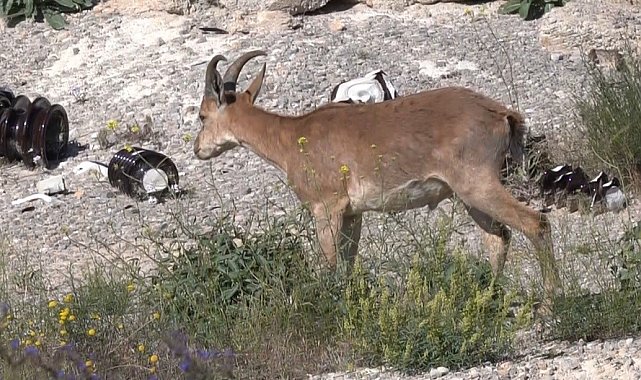 Kemaliye'de fotoğraf çekimine çıkan yaban hayatı fotoğrafçısı Arda Topaloğlu, kamufle olarak şantiye sahasında yaban keçisini fark etti. Topaloğlu, avlanması yasak ve koruma altındaki tür olan yaban keçisini bir süre görüntüledi.