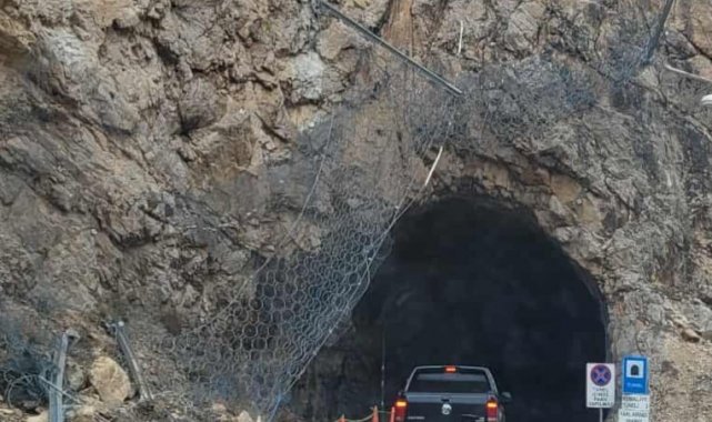Erzincan'ın Kemaliye ilçesinde Şırzı Köprüsü'ne giden yolda bulunan tünelin girişindeki tel örgü sisteminin çökmesi, sürücüler için ciddi risk oluşturuyor.