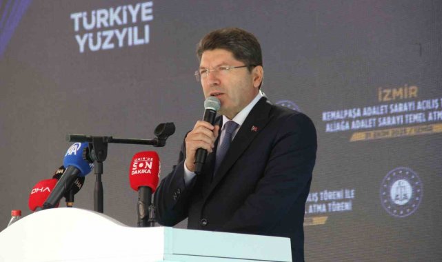 Daha önce yaklaşık 9 bin civarında hakim ve savcının olduğunu belirten Bakan Tunç, "Bugün 25 bin hakim ve savcımız var. Bunların hepsini bir araya getirdiğimizde, özellikle üç dereceli yargı sistemi, istinafa geçmemizle beraber istinaftaki dosya yığılmasını önlemeye yönelik birinci sınıf hakimlerimizin sayısı arttıkça orada da dairelerimizin sayısını artırarak son iki yılda 139 yeni dairenin kurulmasını sağladık. İstinaftaki o yoğunlaşmayı bir an önce çözmek ve vatandaşlarımızın haklarına daha çabuk kavuşabilmeleri için çalışmalarımızı sürdürüyoruz. Türkiye genelinde sadece 78 adliye sarayı vardı; şu anda 387, şimdi 388 oldu. Yatırım programımızda 68 adliye binamız var; 31'i inşaat aşamasında. İzmir Aliağa görüntülerini görmüştünüz. Bugün açılışla beraber onun temel atmasını da buradan uzaktan gerçekleştirmiş olacağız. İnşallah kısa süre içerisinde Aliağa Adalet binamızın da temel atma töreninde sizlerle bir arada oluruz. Bergama, Çeşme, Karşıyaka, Kınık, Kiraz, Menderes, Selçuk ilçelerimizin de adalet binası ihtiyacı olduğunu biliyoruz. Daha kaliteli mekanlara ihtiyaç var diyoruz. Bu ilçelerimizde de inşallah 2026 yatırım programına önce etüt proje, sonrasında yapım aşamasına kadar süreçleri takip ederek bu ilçelerimizin de adalet binaları ihtiyacını karşılamak için çalışmalarımızı sürdüreceğiz" dedi.