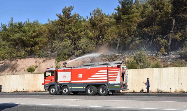 Kemalpaşa'da tırdan ormanlık arana sıçrayan yangın kontrol altında