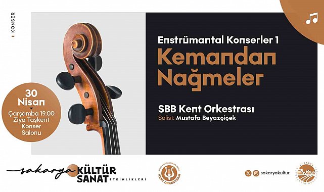 Sakarya Büyükşehir Belediyesi Nisan kültür takvimi konserle devam edecek. "Enstrümantal Konserler" serisinin ilk programı olan "Kemandan Nağmeler" 30 Nisan Çarşamba günü saat 19.00'da Ziya Taşkent Konser Salonu'nda müzikseverlerle buluşacak.