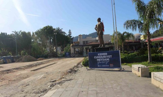 Kentsel Tasarım Projesi ile bambaşka bir görünüme kavuşan Kemer Cumhuriyet Meydanı, Antalya Büyükşehir Belediyesi ve Kemer Belediyesi işbirliğiyle yaza hazır hale getiriliyor. Çalışmalar kapsamında meydanın zemininde bulunan ve yıpranan traverten taş kaplamaları için 3 bin metrekare taş Büyükşehir Belediyesi tarafından temin edildi. Yıpranan taşlarının sökümünün ardından meydana yeni taşlar döşeniyor. Çalışmaların tamamlanmasının ardından meydan yeniden kullanıma açılacak.