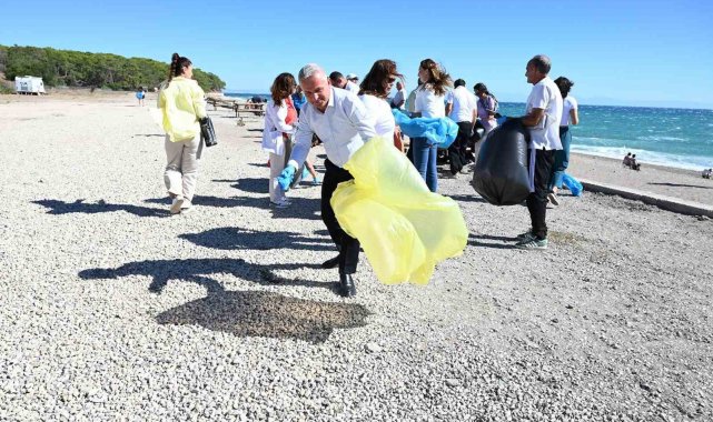 15 Eylül Dünya Temizlik Günü etkinlikleri kapsamında Kemer Belediyesi Temizlik İşleri Müdürlüğü ile İklim Değişikliği ve Sıfır Atık Müdürlüğü tarafından Kemer'de sahil temizliği yapıldı.